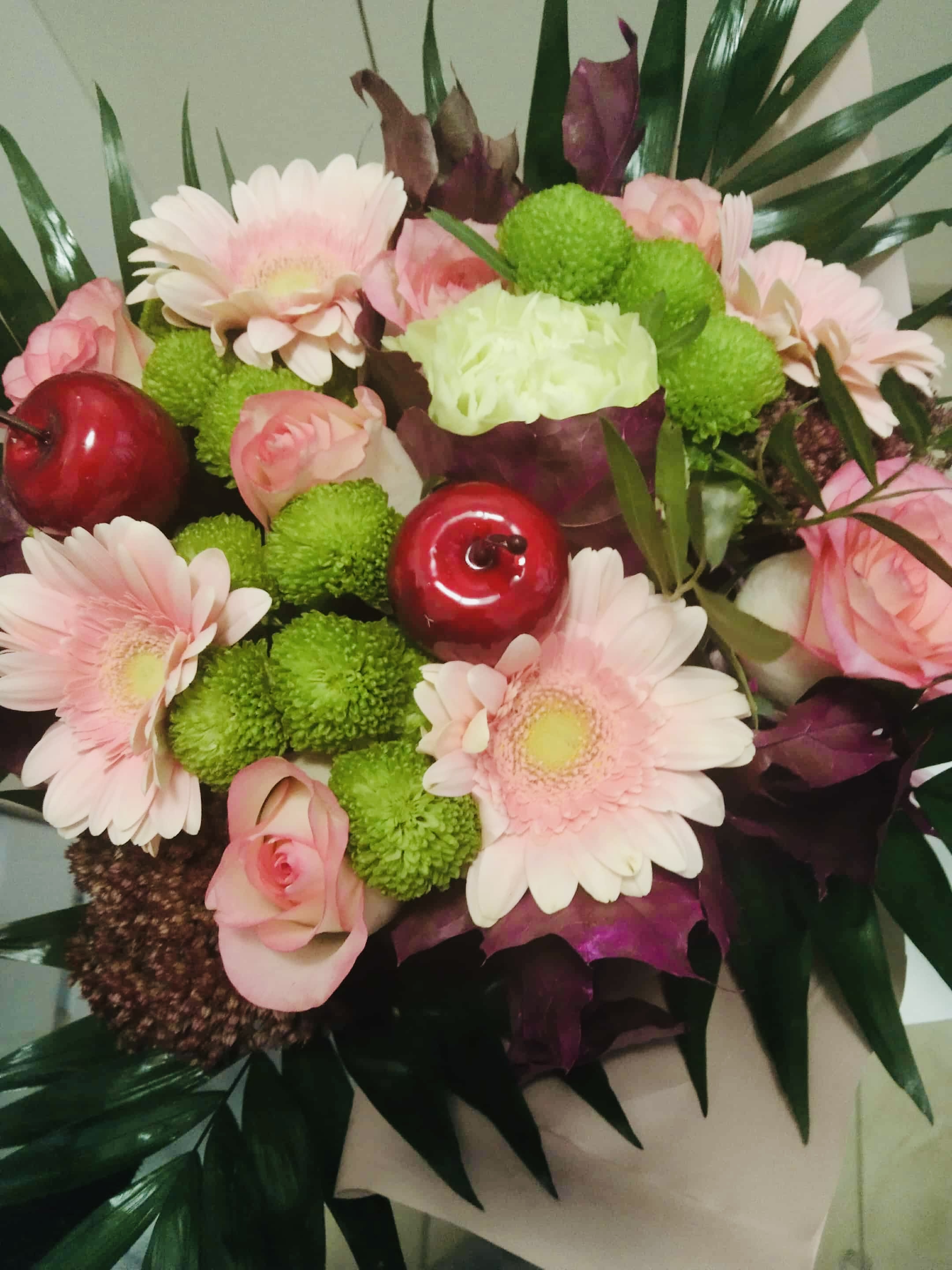 Zawsze świeże kwiaty Kwiaty na jesień w skład których wchodzą róże, gerbery oraz margerytki i jesienne liście oraz dodatki to sposób na poprawę humoru, serdecznie zapraszamy do skorzystania z tej możliwości. Istnieje opcja przesłania ich pod wskazany adres, do czego namawiamy. Za każdym razem zapewniamy najwyższą jakość dobieranych produktów. Bukiet w wersji: