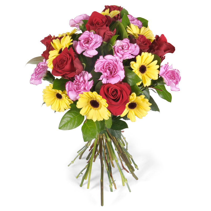 Zawsze świeże kwiaty Róże, gerbery i goździki tworzą harmonijną kompozycję pełną wdzięku. To bukiet, który przyciąga uwagę swoją lekkością. Idealny na każdą okazję — od święta po codzienny gest serdeczności. Wprowadza ciepło i radość tam, gdzie się pojawi. Piękny symbol sympatii i uczuć.