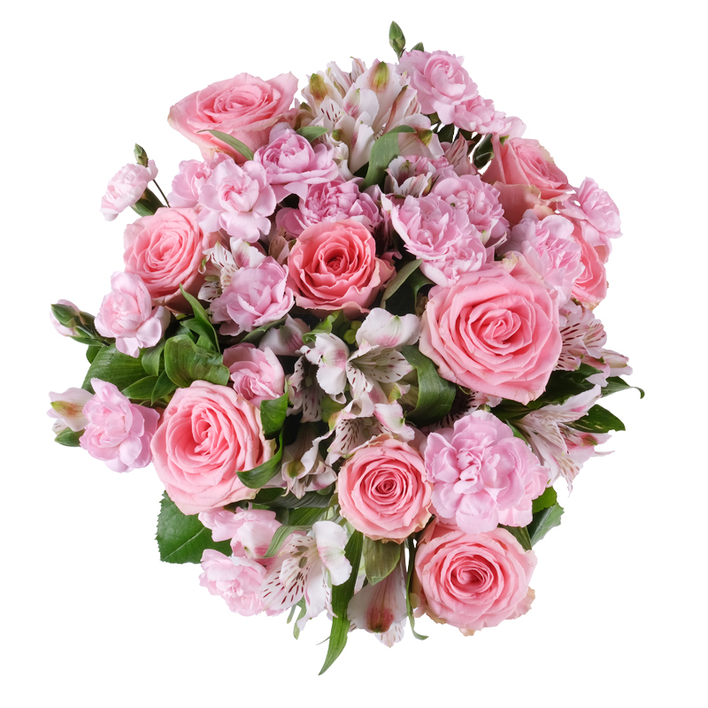 Bukiet „Słodki róż” to połączenie klasyki i lekkości. Złożony z róży, goździka i alstromerii, zachwyca różową tonacją i sprawdzi się jako prezent na imieniny, Dzień Matki czy urodziny. Warto dołączyć bilecik.